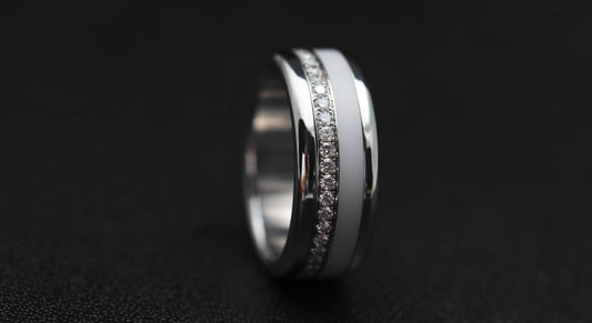 Bague mood joaillerie complète en céramique et et acier sertie de diamants
