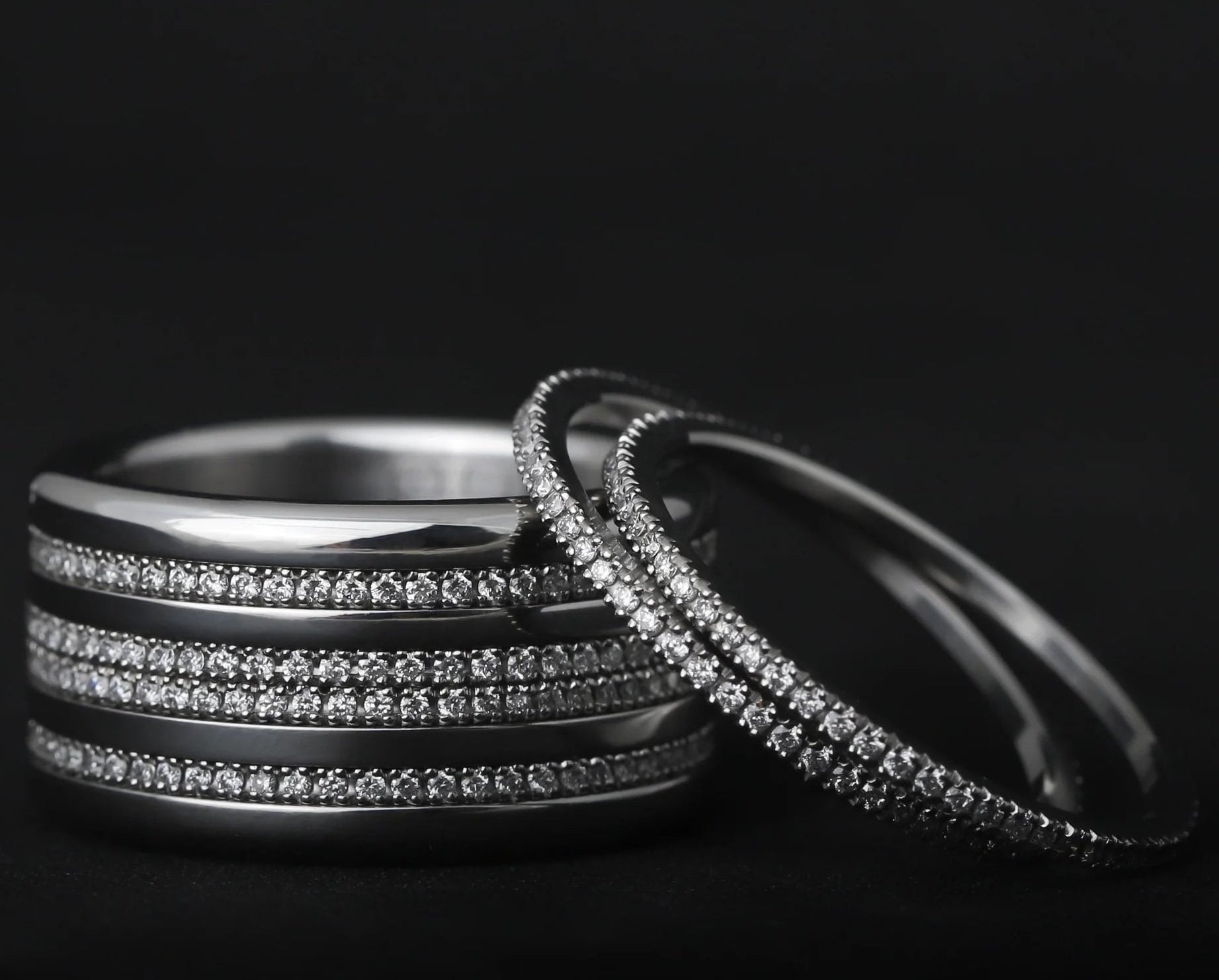 Découvrez nos bagues complètes de luxe avec anneaux interchangeables. De magnifiques bijoux ornés de diamants étincelants pour sublimer votre style.