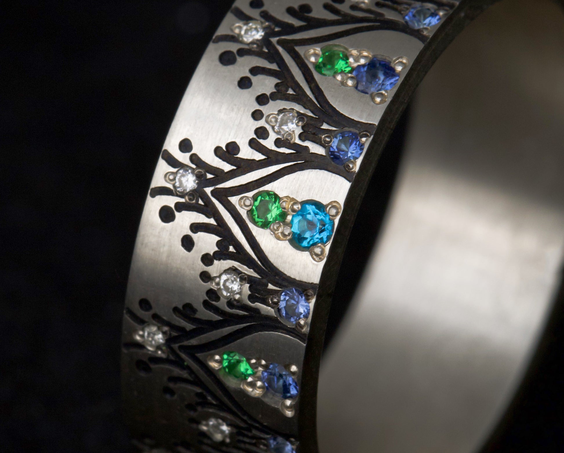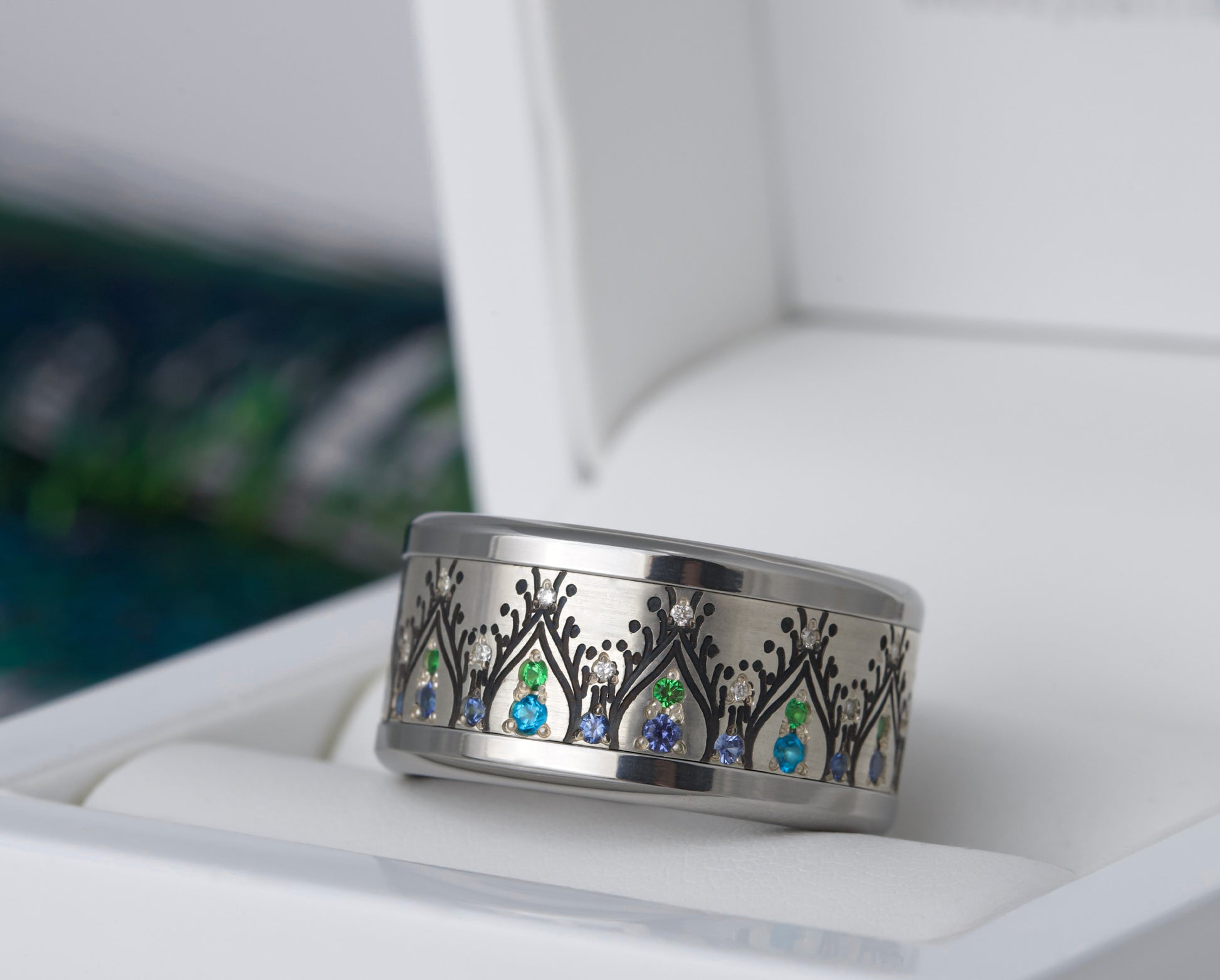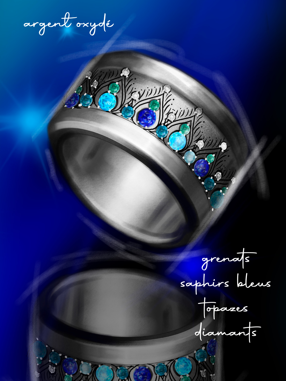 - Blaue Saphire: Diese Edelsteine verleihen einen königlichen Touch und zeitlose Eleganz und erinnern an den Reichtum der Pfauenfedern.