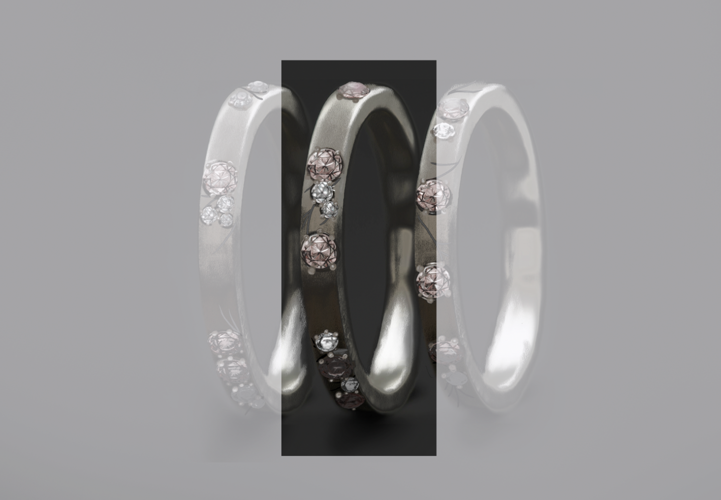 Inspiré de l’art ancestral japonais d’observer la floraison, Hanami rend hommage à ces instants suspendus où la nature s’éveille dans une explosion de délicatesse. Ce projet joaillier inédit se compose d'un addon Medium en or gris piqueté, dont la surface finement gravée évoque l’écorce d’un arbre encore frais du printemps.