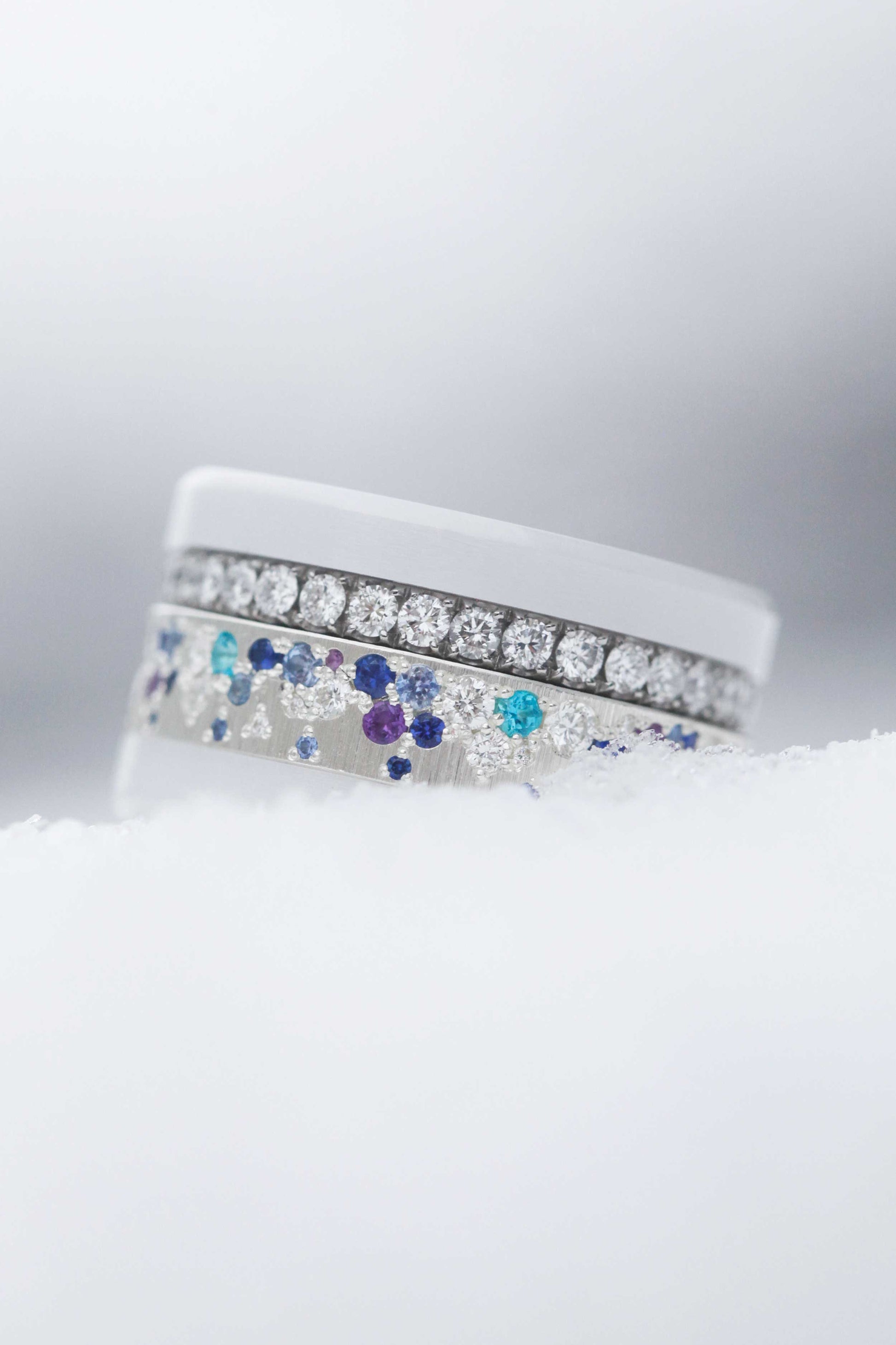 Bague luxe pour femme - Anneau en argent (addon) Yarrow Glacé avec diamants et pierres précieuses